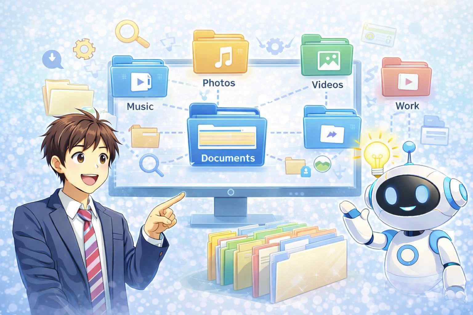 デスクトップは、一時的な置き場所と考えるのがおすすめです。作業が終わったら、フォルダに移動する。このひと手間だけで、迷子がぐっと減ります。
